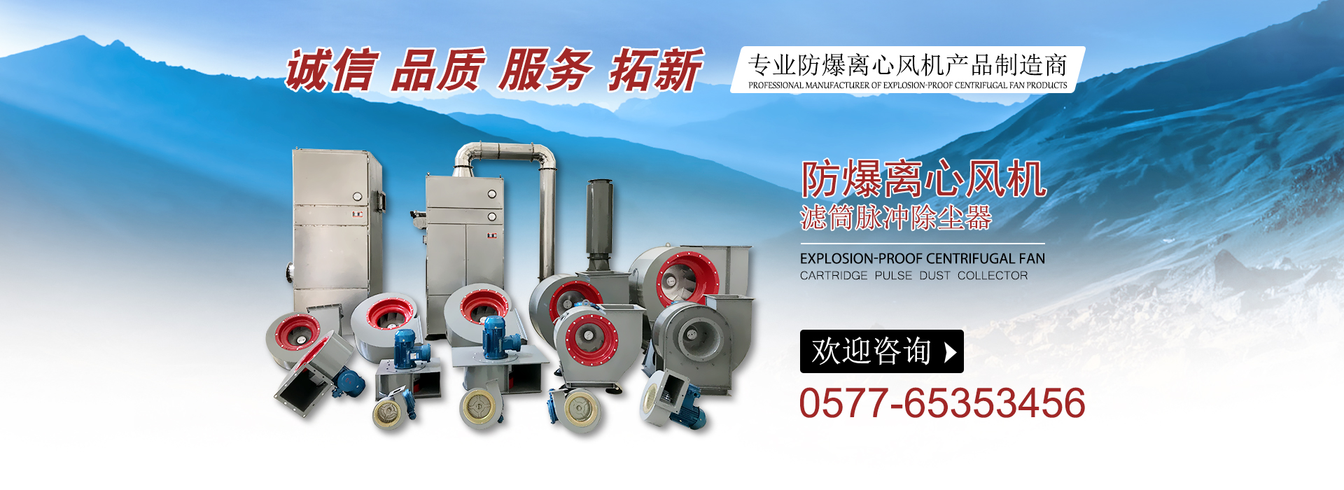 主導產(chǎn)品分為二大類:A 除塵設備(靜電高效除塵器,氣箱脈沖除塵器,離線脈沖袋式除塵器)等。B 模具壓鑄防爆風機鋁葉輪系列,產(chǎn)品廣泛應用于:燃油燃氣鍋爐旁,高濃度粉塵車間,油庫,儲氣站,易爆物品存放倉庫,并有防爆要求的場合安裝使用,可輸送且有易燃易爆和易揮發(fā)性的氣體的通風換氣用。并可按客戶要求設計定制。